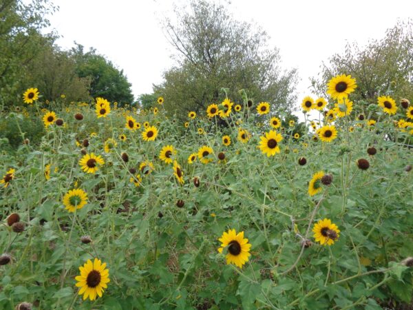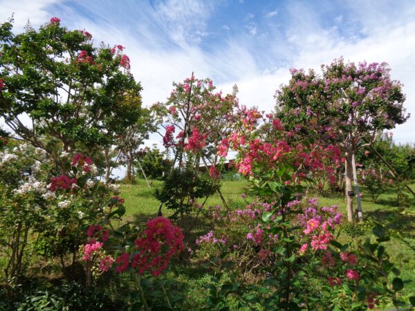 【サルスベリ】【ヒマワリ】’アポロン’は、休む間もなく元気に花を咲かせています
