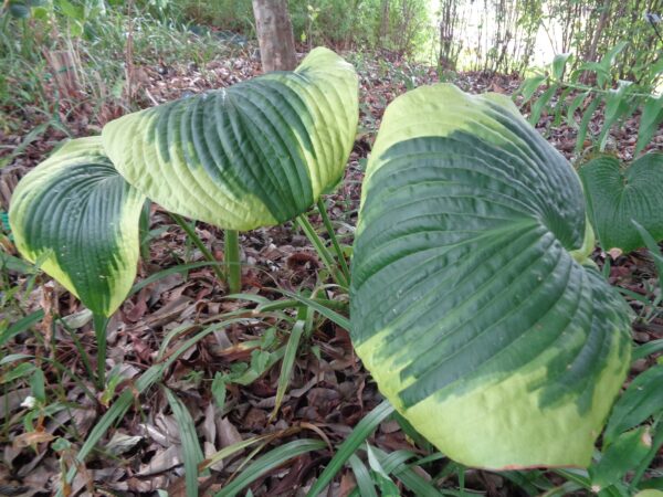 ”シェードガーデン”にも適した【ギボウシ】’ホスタ’・・・大きくて立派な斑入りの葉がガーデンを明るくしてくれます《双子山》