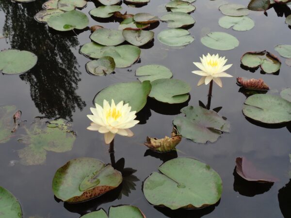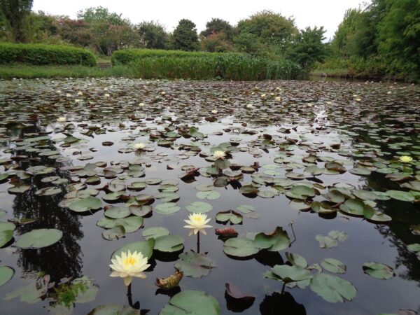【温帯スイレン】まだまだ見応えのある美しい景観を見せています!淡い黄色、ピンク、白など《尾根見の池》早朝から日中が見ごろです