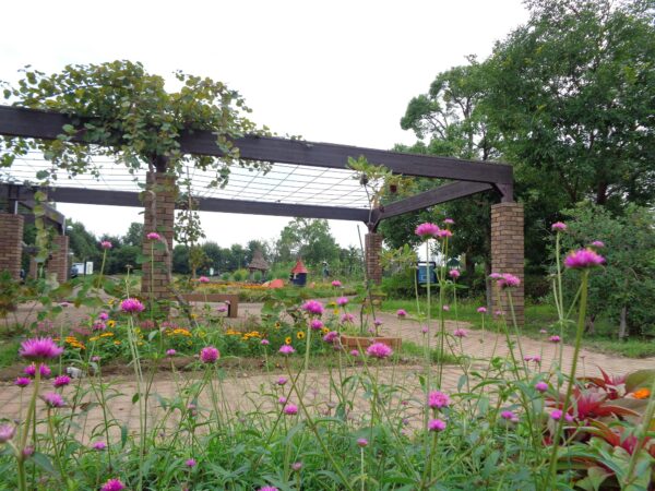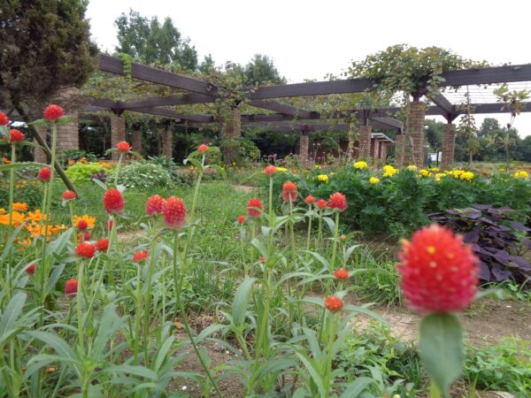 各種【センニチコウ】・・・コロンとまあるい花のようなものは包(ほう)!その隙間に小さな花がさいているよ!
