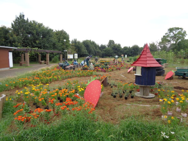 【マリーゴールド】 や【リコリス】など、お馴染みの秋花たちが園内各所にやって来ました!!《キッチンHANA》前・《触れん土ファーム》・《花菜ガルデン》花壇など