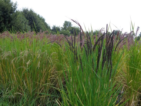 【ジュズダマ】の実が白や褐色に!かつては、とても身近な植物だったので、堅くて光沢のあるビーズ状の実で、首飾りなどをつくったりしたそうです