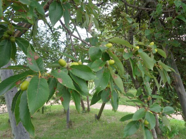 【ラクウショウ】木の最も高いところから枝先にまで、直径2~3センチの丸い実が沢山ついています!実の柄がユニークなので、ぜひ観察してみて👀!!