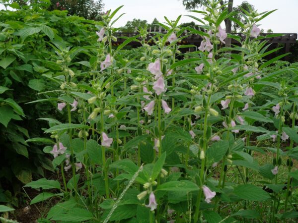 葉の付け根に可愛らしく咲く【ゴマ】の花、・・・下から順に咲いて実になります♪開け~胡麻!