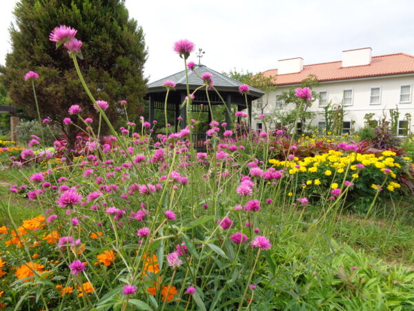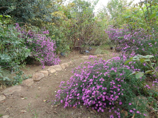 【クジャクアスター(孔雀草)】紫、ピンク、白、園内各所で咲いています