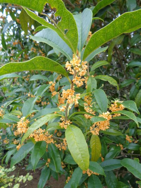 【キンモクセイ(金木犀)】開花中!さ~て、どこに咲いているでしょうか??お散歩がてら探してみてはいかが?リラックス効果が期待できるそうですよ《薔薇の轍》南側