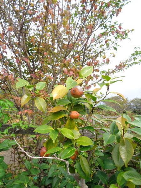 半年ほどかけて熟した【ツバキ】の実が色づきました!椿油の原料として食用や髪油の原料になるそうです