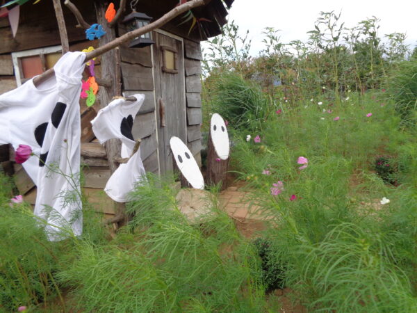 風が吹き荒れる午後・・・畑仕事を終えたゴーストたちが・・・園内のいたるところへ巡回中(;’∀’)🕷・・・
