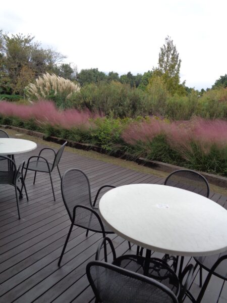 開放感あふれる《レストラン キッチンHana》から眺めるガーデンは格別です!!秋の味覚を味わいながら、花と緑の風景をお愉しみいただけます♪