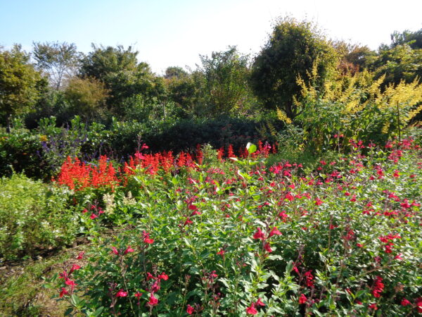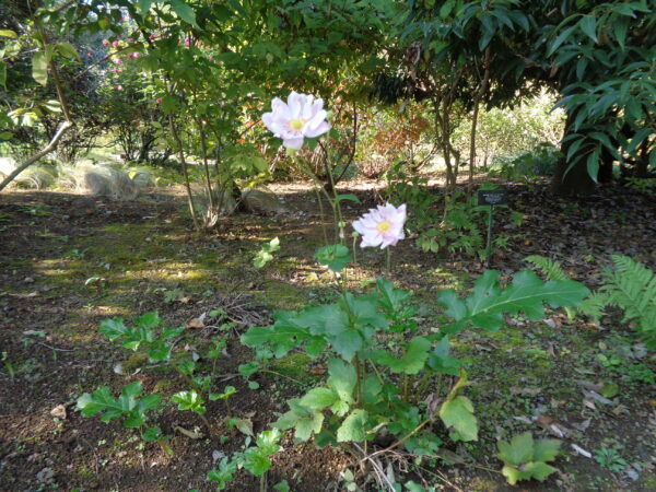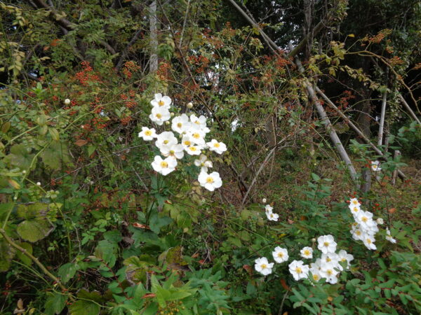 【シュウメイギク】は≪薔薇の轍≫園内各所で、もうしばらくの間見られそうです!群生している姿と楚々と咲いている姿では、印象が変わります