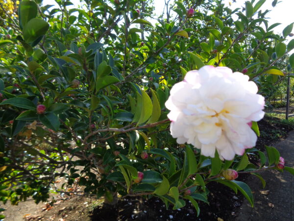【カメリア】(和名サザンカ)の一番花が咲き始めました!もう直ぐたくさんの花が見られそうです!