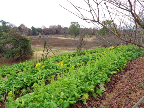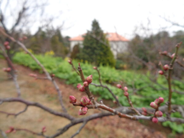 【ナノハナ】が少しずつ咲き進み、【ウメ】’十郎’の蕾がふんわりと膨らんで、やさしいピンク色になりました・・・