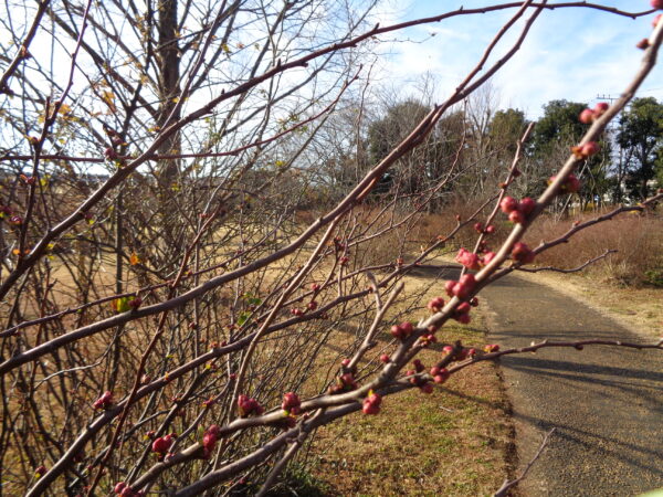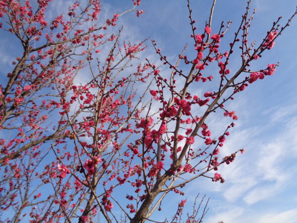 【ウメ】’鹿児島紅’は、もう少しで満開に!