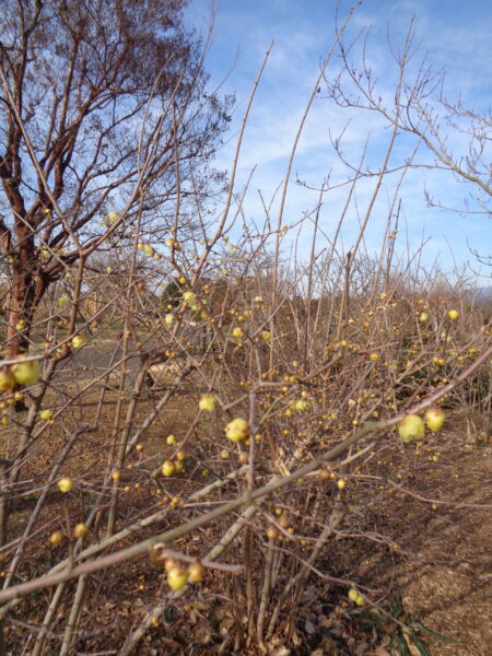 両側にたくさんの【ロウバイ】が植栽された「蝋梅の小道」!!控えめな花姿ですが一見の価値あり!