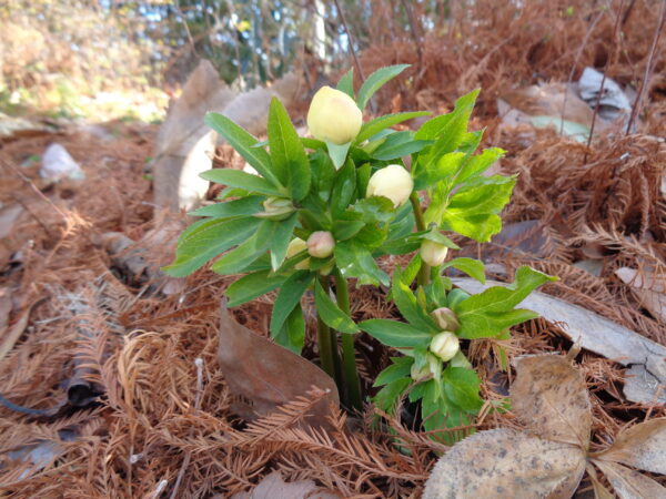 【ヘレボルス】’クリスマスローズ’は、順調に咲き進んでいます!数輪の花を風に遊ばせている株もあれば、たくさんの花を付けた大株も!