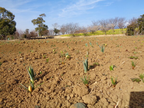 【チューリップ】【クロッカス】などの春咲き球根がびっしりと植栽された《触れん土ファーム》から、一斉に新芽が上がり始めたではありませんか!