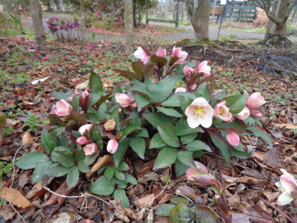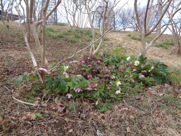 色も花模様もとりどり!【ヘレボルス】’クリスマスローズ’は《往のし方の小庭》《尾根見の池》《紅葉重ねのほとり》などで、見ごろに!!