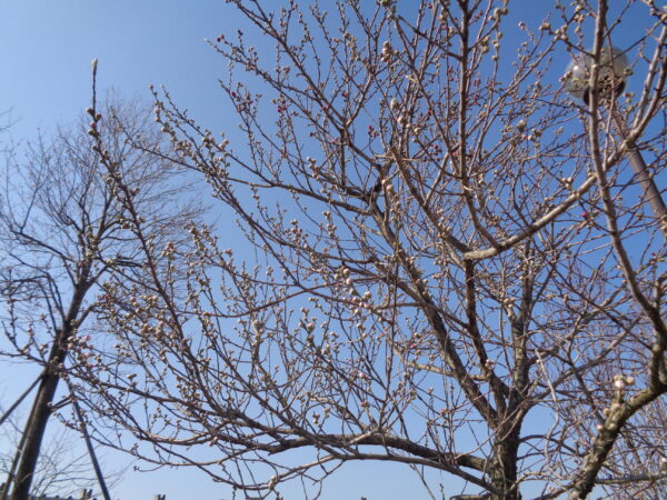 【ハナモモ】’ゲンぺイ’は、枝先にびっしりと蕾を付けてスタンバイOK!