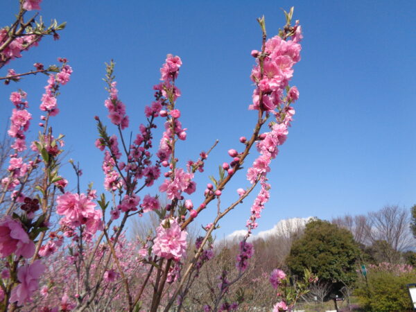 【ウメ】’美人梅’は花盛り🌸🌸《三日月山》でひときわ目を引いて咲いています!