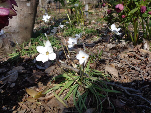 原種の【スイセン】を代表する’バルボコディウム’が《往にし方の小庭》で開花!草丈10㌢程度のとても華奢な姿で咲いています。。。