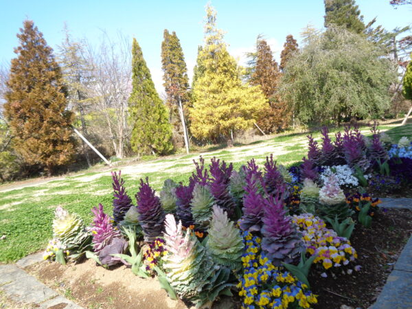【ハボタン】が背丈を伸ばし、ちょうど近くに植えられた【針葉樹・シンヨウジュ】にそっくりです(*^-^*)