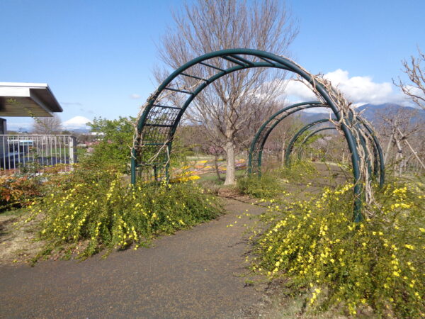 【ウンナンオウバイ】は《三日月山》アーチの下で咲き始め華やかに!