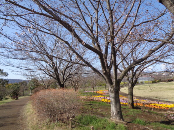 《三日月山》などに植栽されている【ソメイヨシノ】は一分咲から2分咲きといったところでしょうか(3・26撮影)