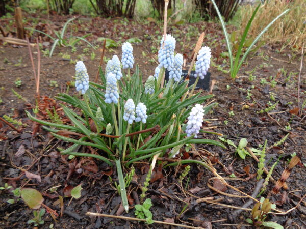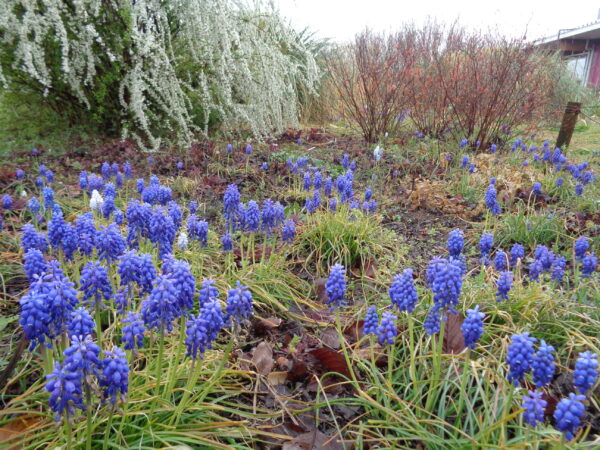 【ムスカリ】爽やかな色をもった壺型の小さな花を密集させて咲いています!名わき役なんて言われますが、群生する姿はこの花だけでも主役級💙《ボーダーガーデン》
