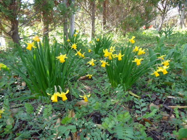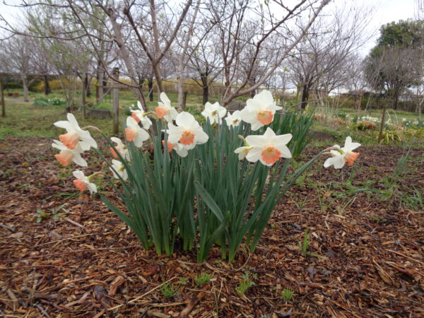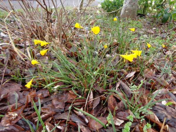 【ラッパスイセン】一軍咲きのピークが過ぎたころから、二軍の【スイセン】たちがたくさん咲き始めています《園内各所》