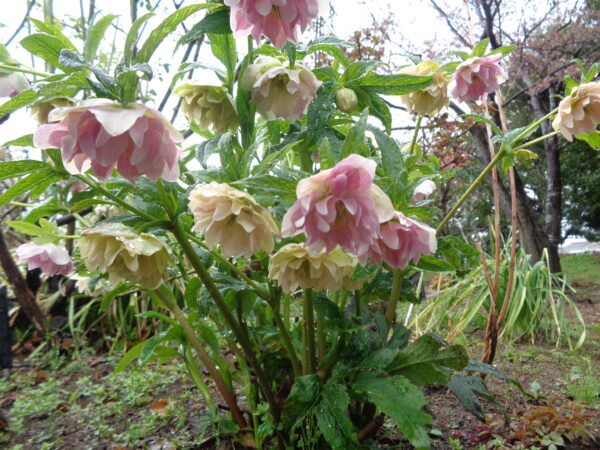 【ヘレボルス(クリスマスローズ)】園内各所で引き続きたくさんの花を咲かせていますが、みんな下向きに咲いていますのでお見逃しなく👀