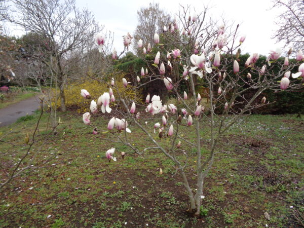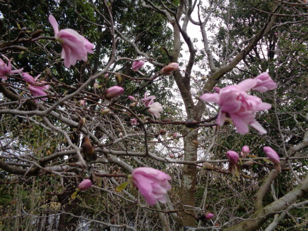 《往にし方の小庭》では各種【モクレン】が続々と花を開かせていますが、だいぶ野鳥に食べられているようでうす・・・