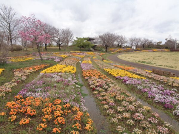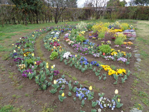 まだまだ寒い時期に植栽された《三日月山》の【パンビオ】の勢いがとまりません!各色ぐ~っと鮮やかに!
