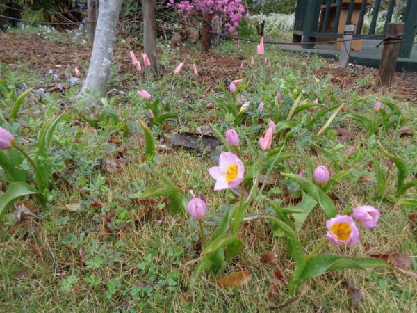 シャープな花姿をもった原種系の【チューリップ】が見られます《往にし方の小庭》など
