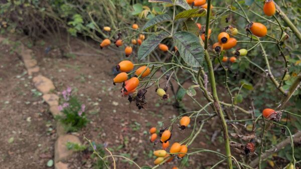 野生種とその交配種のエリアでは色とりどりのバラの実「ローズヒップ」が見られます。