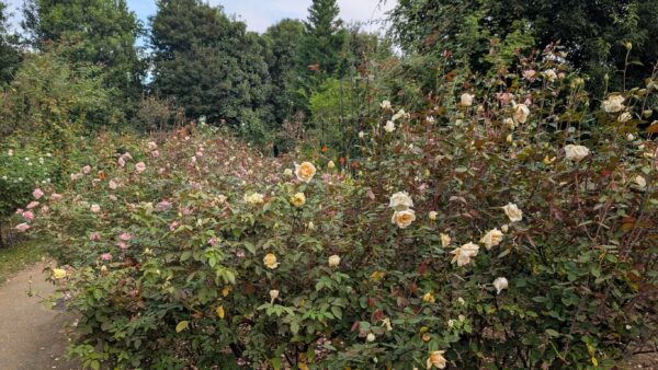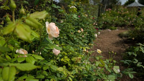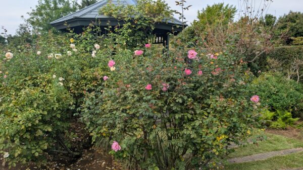 特に、イングリッシュローズエリア、オールドローズエリアで花数が多くなっています。