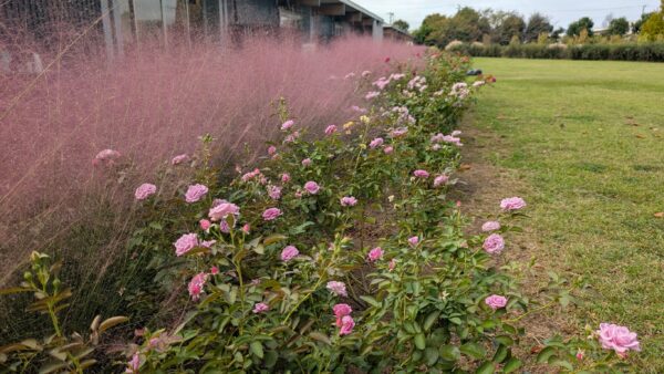 グリーンフィールドではミューレンベルギアとバラが見られます