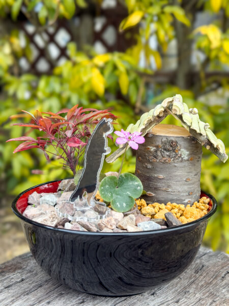 手作りのミニチュア家具を作って小さな和風庭園を作ります。