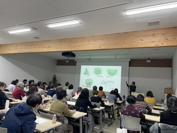 剪定の目的をはじめ、樹形や様々な剪定方法を写真や図を交えてご紹介いただきました。
