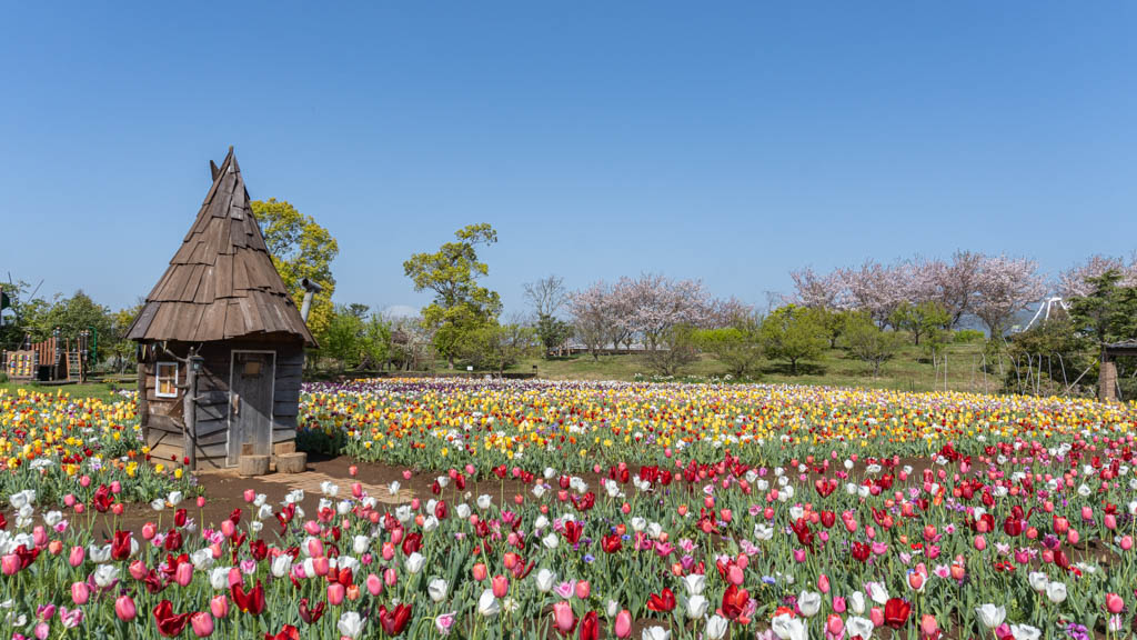球根MIX花壇・里桜・原種系チューリップ・・・モッコウバラが咲き始めました -